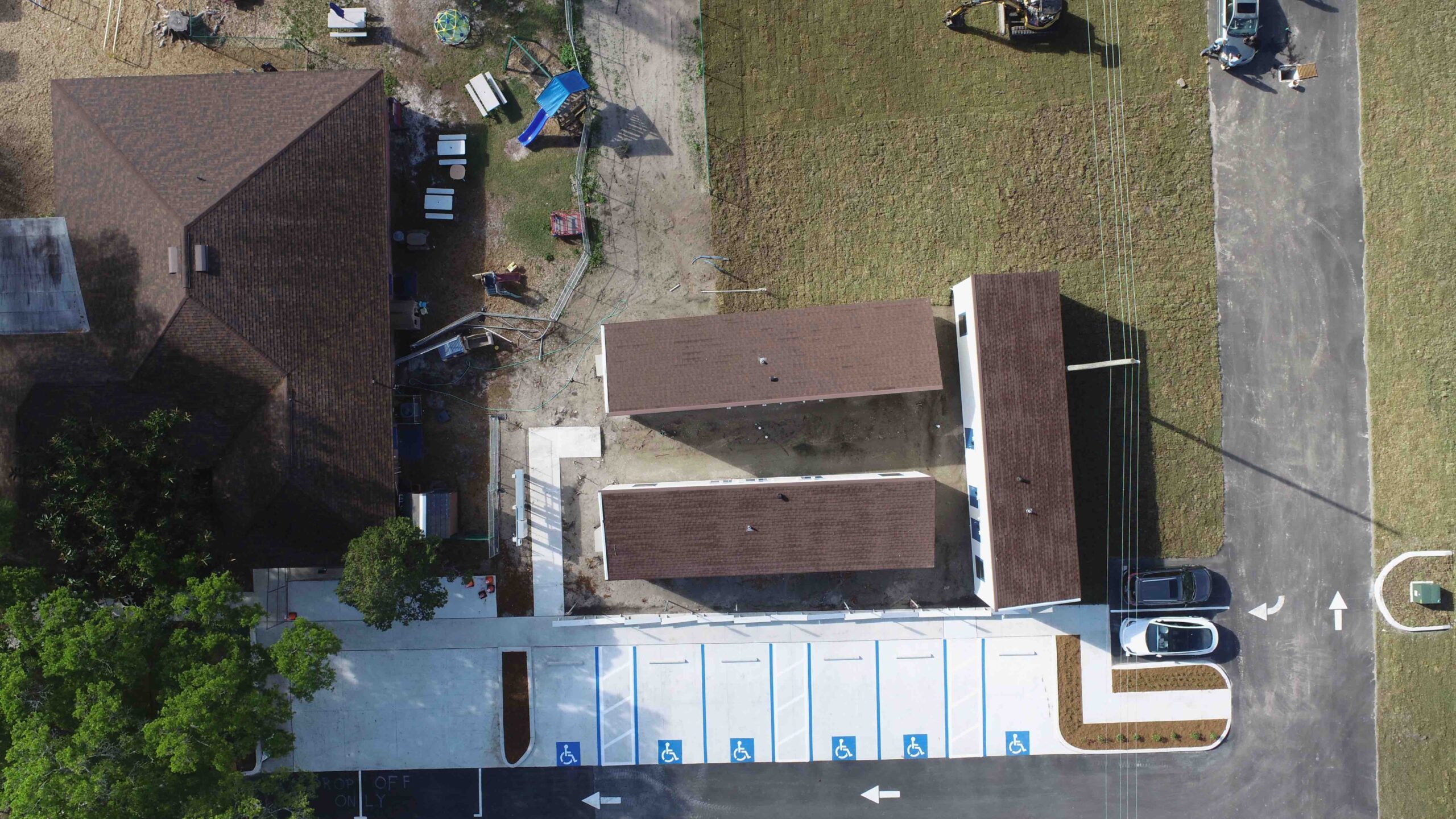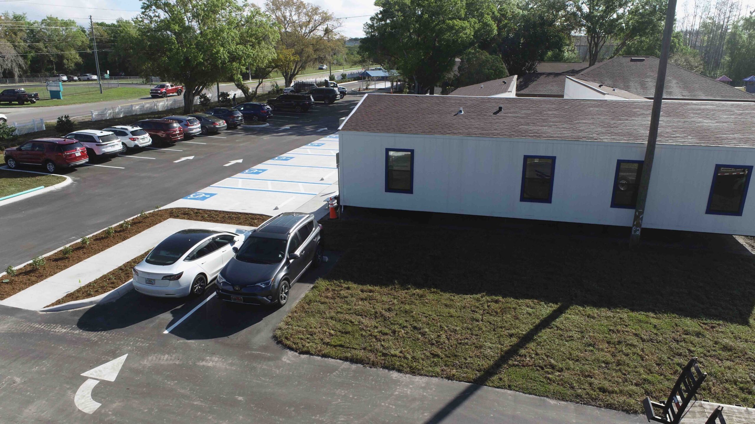 Additionally, the project also included multiple other renovations to the lot such as a new fire drive aisle, additional parking areas, utility infrastructures, and a retention pond for future building expansions.